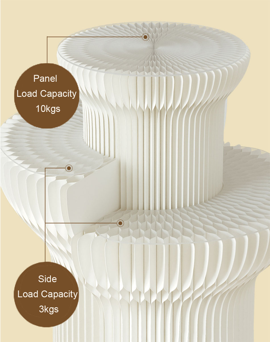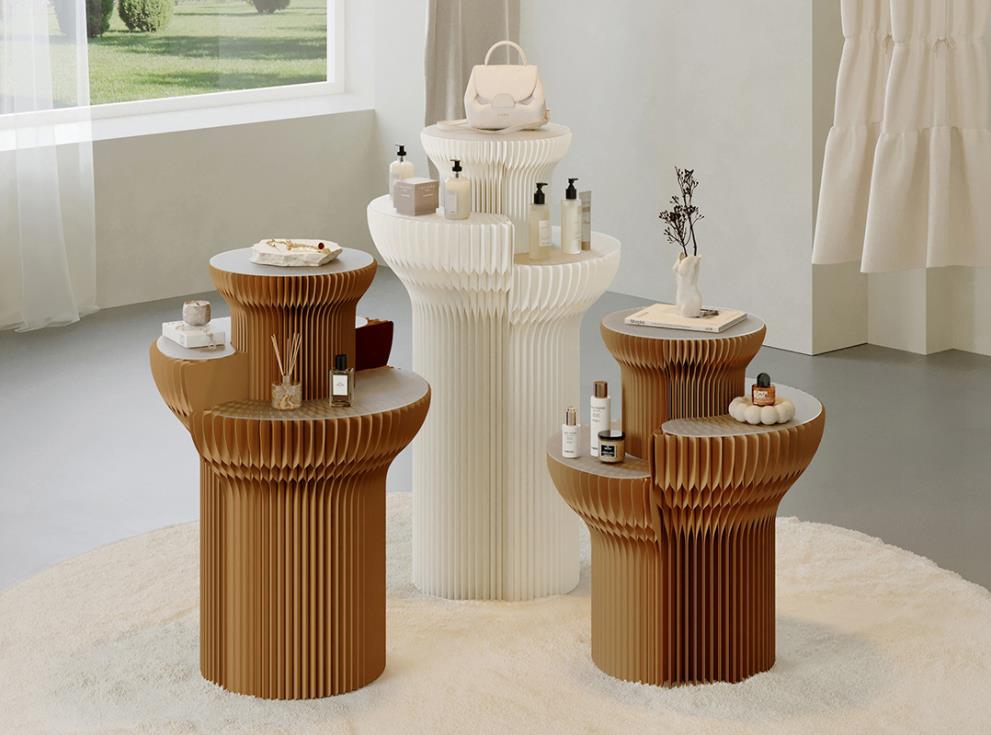 Description: 3 Tiers Cylindrical Paper Made Display Stand features a main body crafted from high-quality long-fiber kraft paper and adopts a honeycomb hexagonal mechanical structure. It is eco-friendly and durable, ideal for sample display in large spaces. A built-in warm light strip in the middle creates an exquisite artistic atmosphere. Its foldable design facilitates transportation, installation and storage, effectively saving your storage space.