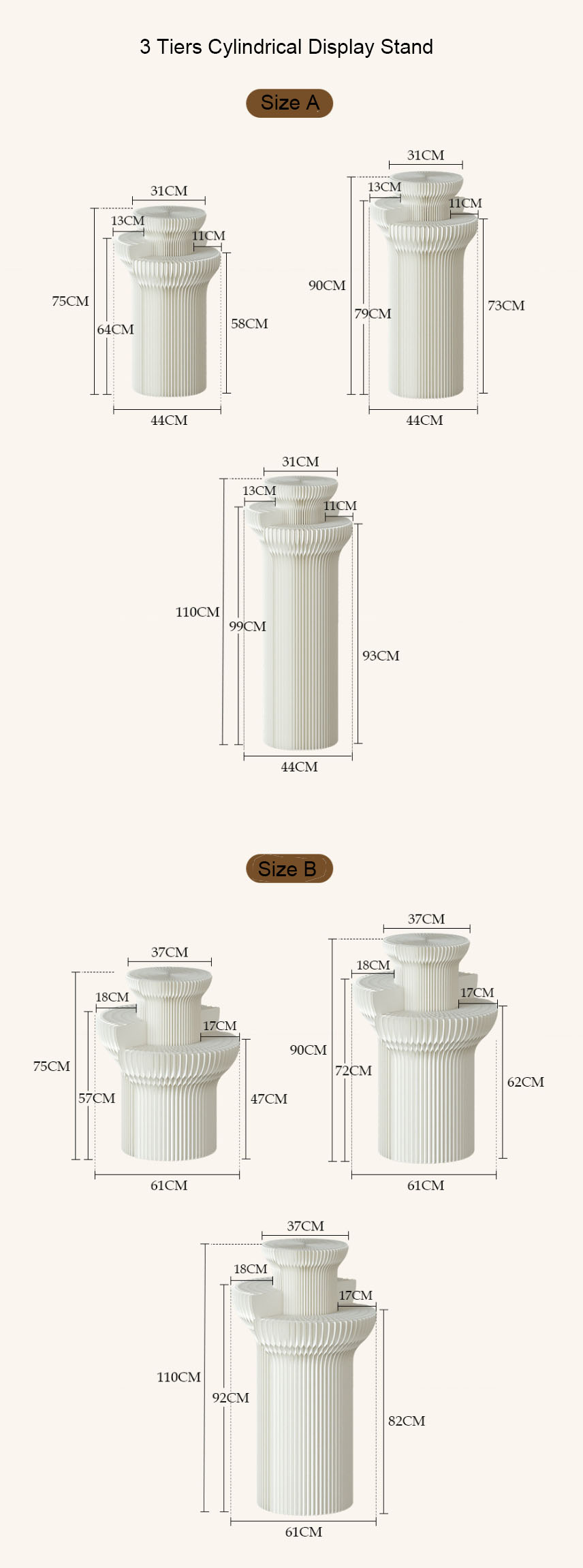 PRODUCT: 3 TIERS CYLINDRICAL DISPLAY STAND