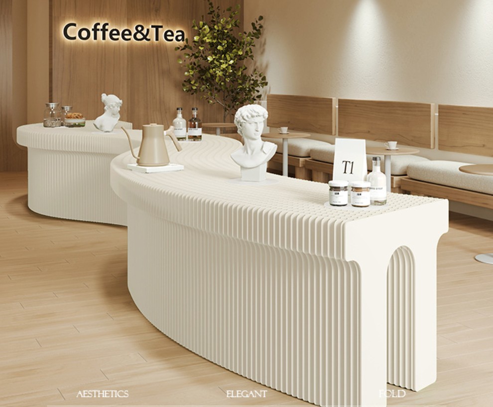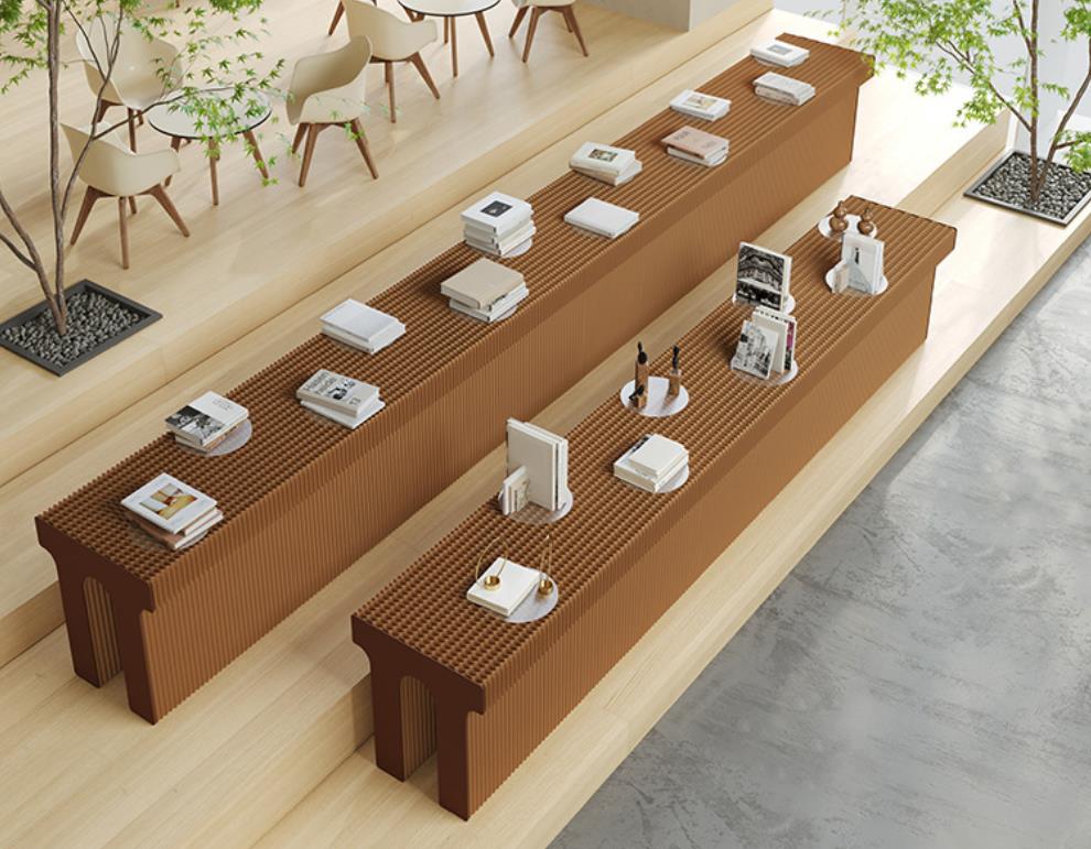 DESCRIPTION: The Arch Shape Kraft Paper Display Stand is made of high-quality long-fiber virgin pulp kraft paper and processed with a honeycomb hexagonal structure. It features an accordion-shaped appearance and is easy to assemble, place, fold and store. Its shape can be customized according to customer needs (e.g., LOGO, Brand), and it can be placed freely in various customer scenarios in forms such as linear, S-shaped, U-shaped and more.