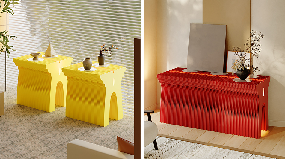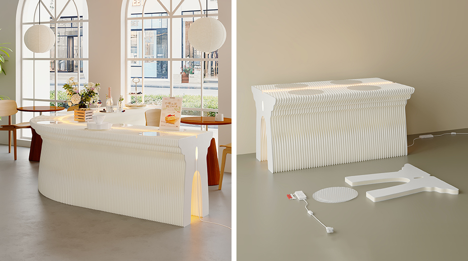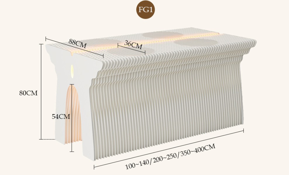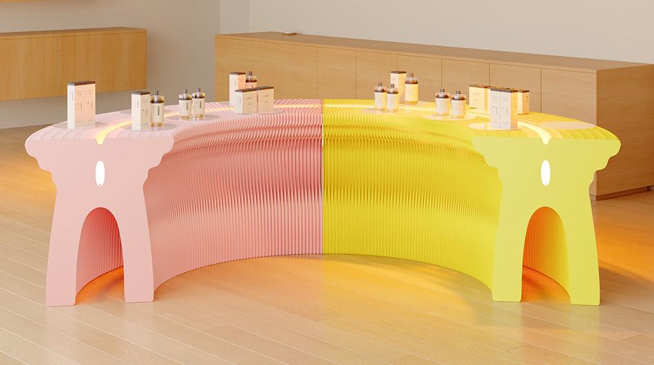 DESCRIPTION: The butterfly-shaped display stand is crafted from high-quality long-fiber kraft paper and manufactured with a honeycomb hexagonal structure. Its side panels feature a butterfly-shaped design, exuding an elegant and tasteful aesthetic. It is effortless to assemble: simply have two people hold the side panels and stretch them until they no longer spring back. Its overall shape can be adjusted freely and formed into linear, S-shaped, curved and circular configurations.