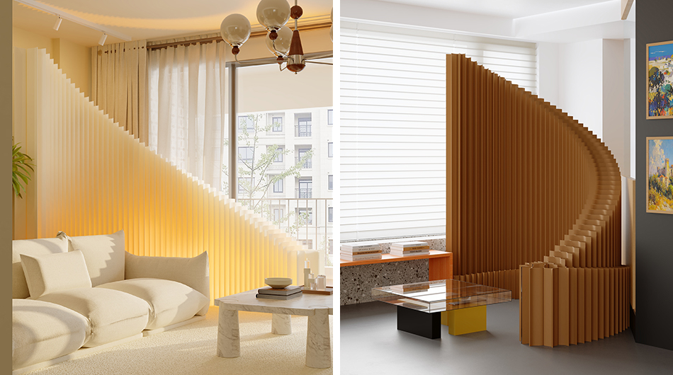 This harp screen draws its inspiration from the shape of the musical instrument harp. Its main material is premium long-fiber kraft paper, and it adopts a hexagonal honeycomb structure—allowing the screen to be freely shaped into various styles, straightened or curved at will. It features easy assembly and foldable storage, maximizing your space savings.