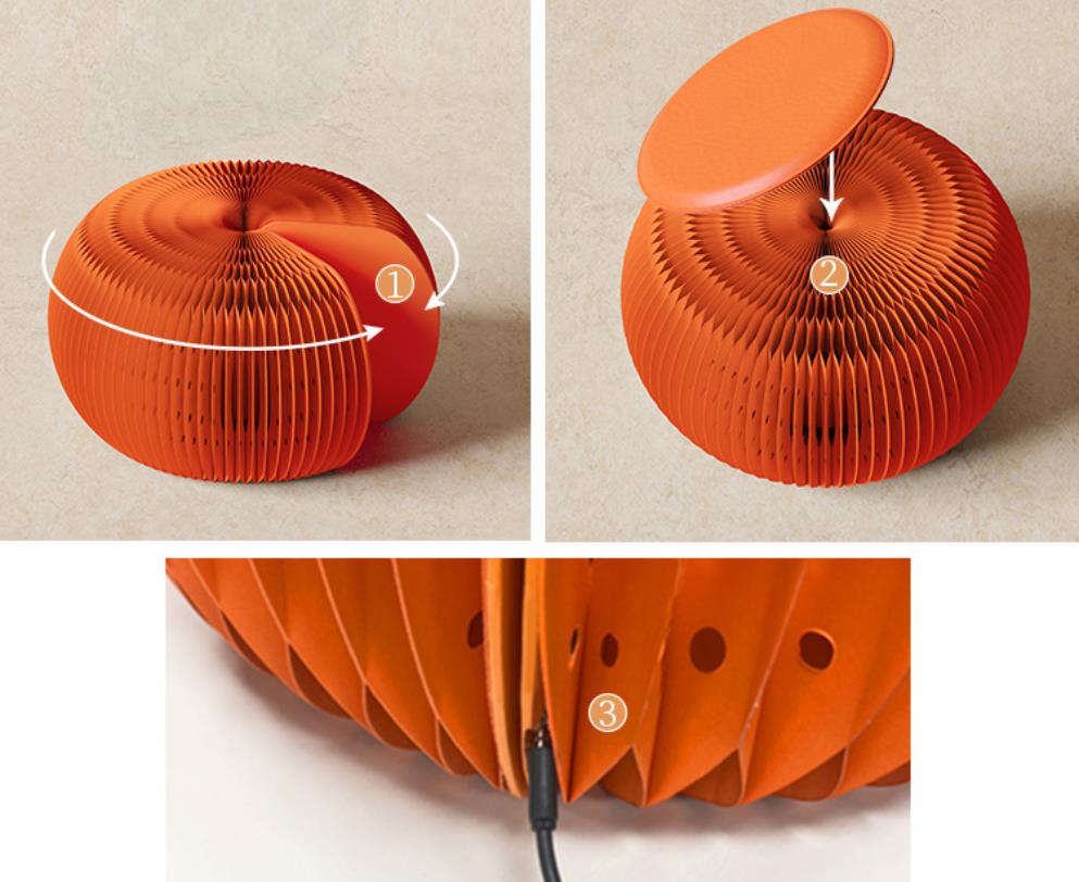Its side panels are made of premium acrylic boards and paired with custom fasteners for ultra-easy assembly: simply form the paper stool into a circle, fix the side panels up and down with the custom fasteners, then place the cushion on top – it’s that simple! For storage, just unfasten the fasteners, fold the stool flat and it’ll shrink to the size of a magazine, freeing up precious space in your home effortlessly.