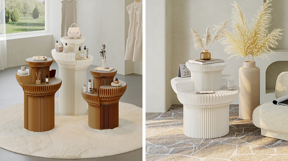 Description: 3 Tiers Cylindrical Paper Made Display Stand features a main body crafted from high-quality long-fiber kraft paper and adopts a honeycomb hexagonal mechanical structure. It is eco-friendly and durable, ideal for sample display in large spaces. A built-in warm light strip in the middle creates an exquisite artistic atmosphere. Its foldable design facilitates transportation, installation and storage, effectively saving your storage space.
