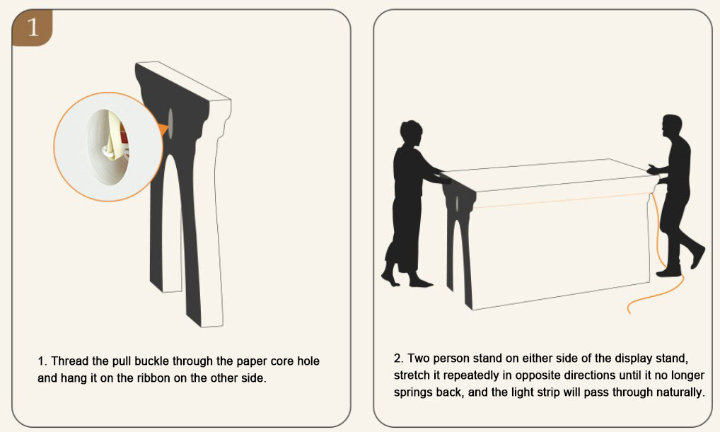DESCRIPTION: The butterfly-shaped display stand is crafted from high-quality long-fiber kraft paper and manufactured with a honeycomb hexagonal structure. Its side panels feature a butterfly-shaped design, exuding an elegant and tasteful aesthetic. It is effortless to assemble: simply have two people hold the side panels and stretch them until they no longer spring back. Its overall shape can be adjusted freely and formed into linear, S-shaped, curved and circular configurations.