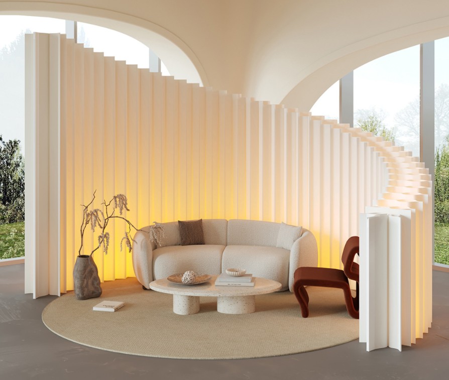 This harp screen draws its inspiration from the shape of the musical instrument harp. Its main material is premium long-fiber kraft paper, and it adopts a hexagonal honeycomb structure—allowing the screen to be freely shaped into various styles, straightened or curved at will. It features easy assembly and foldable storage, maximizing your space savings.