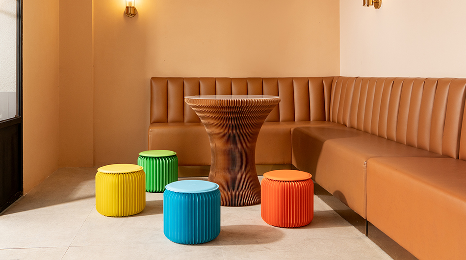 Its side panels are made of premium acrylic boards and paired with custom fasteners for ultra-easy assembly: simply form the paper stool into a circle, fix the side panels up and down with the custom fasteners, then place the cushion on top – it’s that simple! For storage, just unfasten the fasteners, fold the stool flat and it’ll shrink to the size of a magazine, freeing up precious space in your home effortlessly.